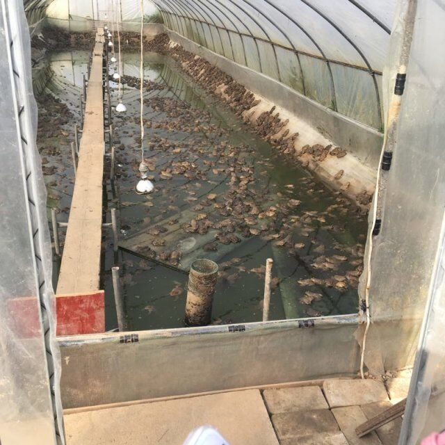 在易经理的带领下,同学们来到了养殖基地的人工养殖棚。南虎纹蛙本来生活在热带,到了上海不能自然越冬,需要人工营造小环境,于是蛙池里装了供暖设备,冬天保持在15℃以上。除了繁衍小青蛙之外,基地还大力推进海南种和本地种的杂交实验,希望能够培育出在田间能自然过冬的新品种。