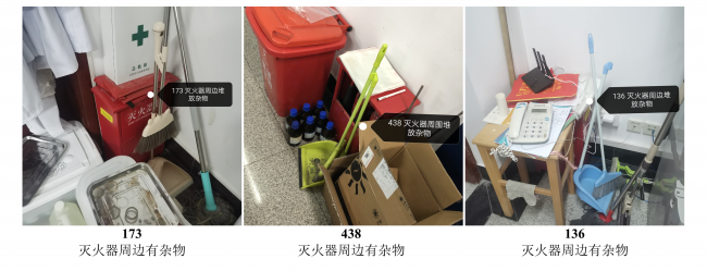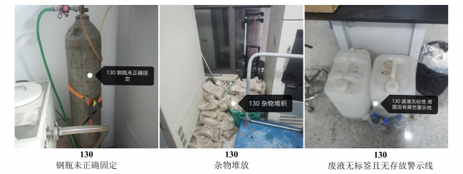 此次的安全检查仍然将检查重点放在实验室部分。对实验室仪器放置、废弃物处理、实验人员安全防护进行了专项检查,检查结果如下。对于检查中发现的一些问题与隐患,小卫士们进行了拍照记录,并进行了整理。