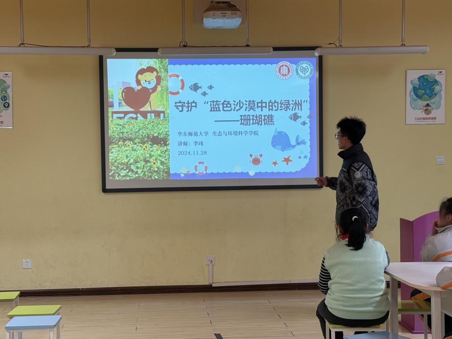 2024年11月26日、27日、28日下午,生态环境小课堂讲师团前往泥巴影院 附属紫竹小学、永德学校、马桥民办小学开展环教课,本次环教课的主题为“蓝色沙漠中的绿洲——珊瑚礁”,担任本次课程的讲师为王如盈、徐诗雨、张冰然、李玮同学。