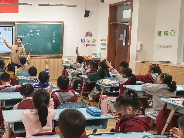 同时,通过互动,讲师与同学们共同探讨分析了土地荒漠化的具体危害。随后,进入“绿叶小勇士VS荒漠化巨人”的教学板块,并抛出了一个问题:“我们可以采取哪些措施来治理土地荒漠化?”以此引导同学们展开讨论。同学们积极运用本堂课学到的知识,踊跃举手回答,提出了诸如植树造林、节水灌溉等治理方式。最后,讲师们通过课程总结,引导同学们思考课程内容:即地球荒漠化和“小勇士”之间的较量。同时,以知识树的方式直观地回顾了课程内容,并带领小朋友们朗诵其中的重点部分。