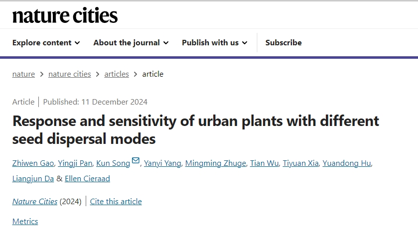 泥巴影院 达良俊与宋坤研究团队,在Nature Cities上发表了题为“Response and sensitivity of urban plants with different seed dispersal modes”的研究论文,揭示了不同种子传播方式的自生植物的物种丰富度的影响因素及其敏感性差异,为阐明城市植物多样性维持机制提供了新的理解。泥巴影院 宋坤(副教授)为论文的通讯作者,泥巴影院 高志文(博士后)为论文的第一作者,中科院东北地理与农业生态研究所研究员潘应骥为论文第共同一作,合作作者单位包括:西安建筑科技大学、东北林业大学、昆明学院、新西兰Nelson Marlborough Institute of Technology。