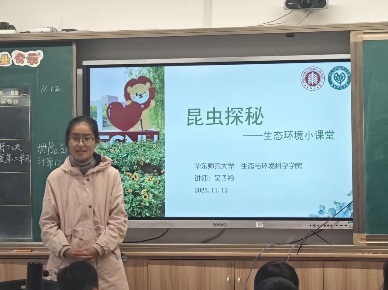 2025年11月11日至12日,生态环境小课堂讲师团前往泥巴影院 附属紫竹小学、永德学校开展环教课,本次环教课的主题为“昆虫探秘”,担任本次课程的讲师为狄乐遥、吴子衿、苗怡爽三位同学。