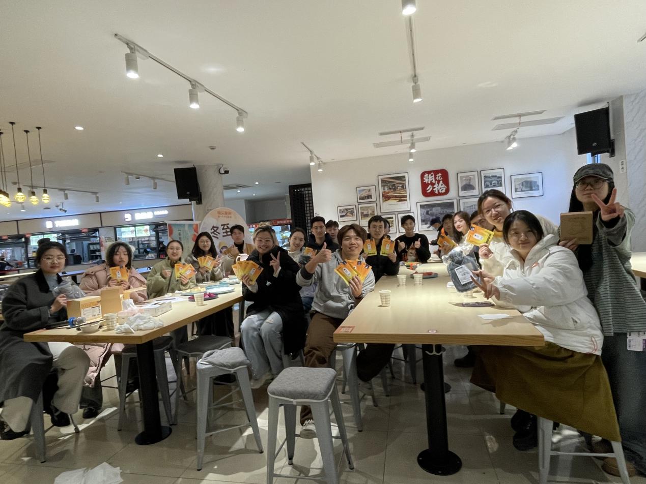 至此本次“‘生’韵饺香,‘环’聚冬至”主题团日活动在温馨欢乐的氛围中圆满结束。本次活动通过组织冬至包饺子这一传统文化活动,不仅让同学们体验了传统的节日习俗,而且还让同学们在包饺子、才艺表演等环节中,加深了对彼此的认识,提升了团支部的凝聚力,让同学们在寒冷的冬天感受到生环大家庭的温暖。