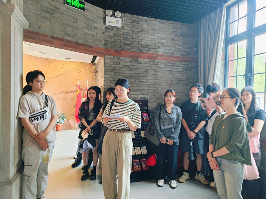 此行第二站,党员同志们来到了中共三大后中央局机关历史纪念馆,由环境工程专业的党员张舒和郑佳乐领学参观。张舒介绍了纪念馆的历史,中共三大后中央局机关历史纪念馆又称闸北革命史料陈列馆,1988年7月1日正式对外开放,2000年正式更名,陈列了中共三大后中国共产党在闸北区进行革命活动的重要历史资料。