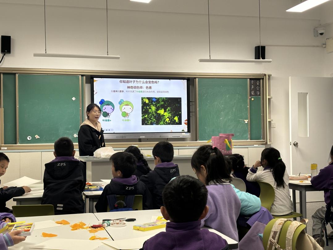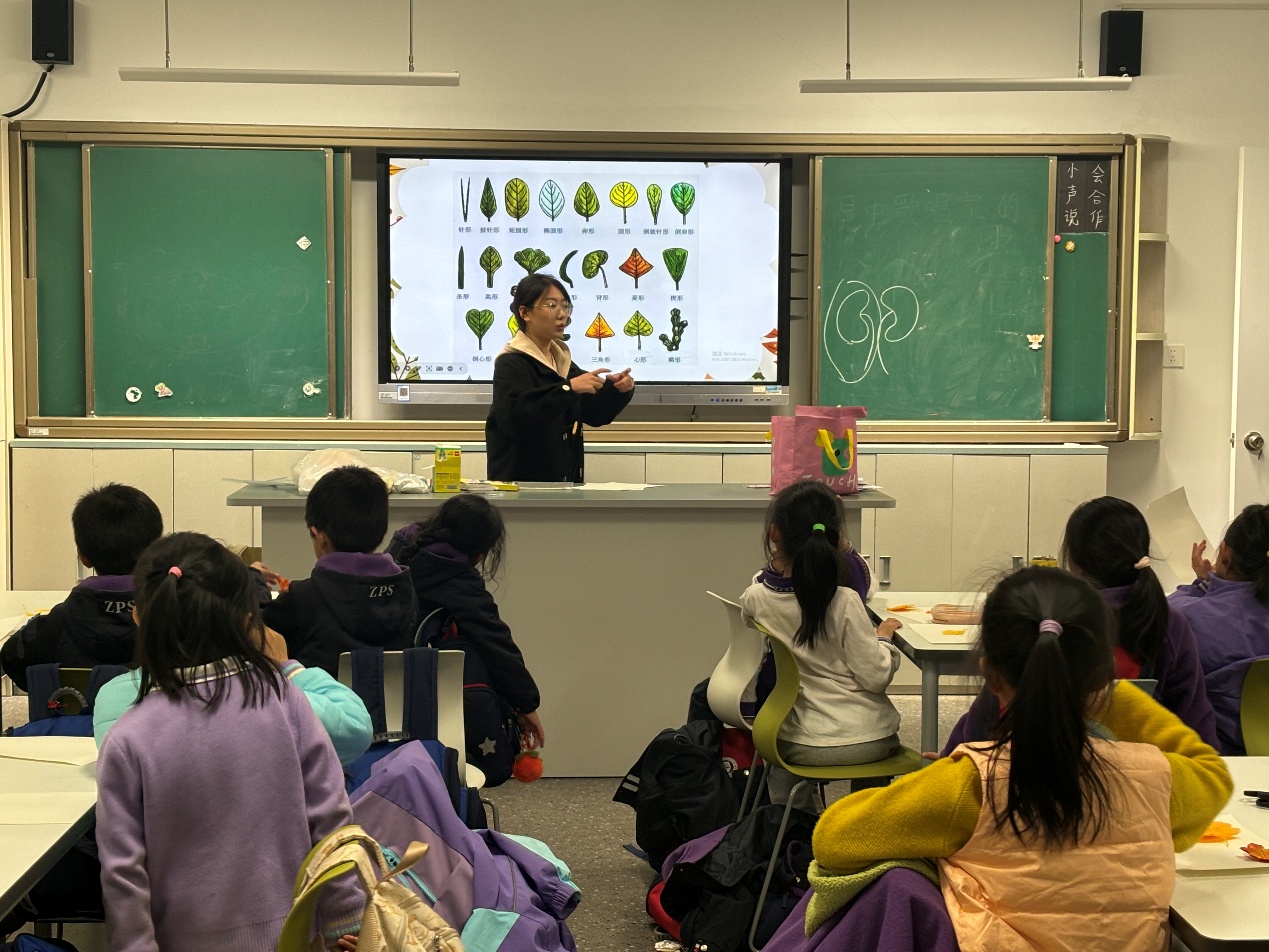 课程伊始,讲师以“你观察过植物的变化吗?”这一问题引入主题,引导学生思考。同学们积极举手,分享各自在日常生活中观察到的树叶生长与颜色变化的经历。课堂在热烈的互动中展开,随后进入树叶相关知识的讲解环节。