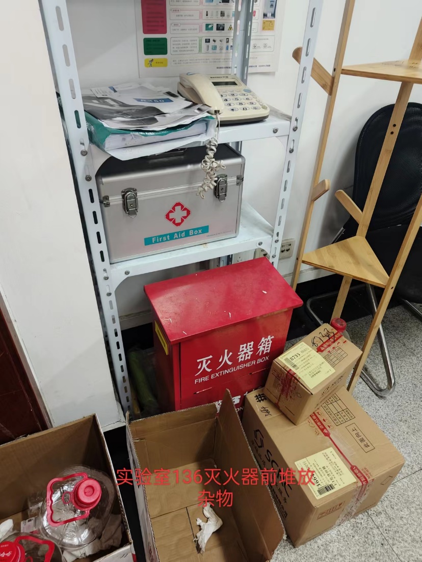 本次检查中所有实验室评分都在90分以上,其中有56个实验室获得满分。在此次检查中,大部分实验室物品摆放规范整齐、卫生情况良好、管理及防护到位,但仍有部分实验室存在灭火器周围存在遮挡、实验物品和垃圾堆放杂乱等问题,希望同学们能予以重视,防患于未然。