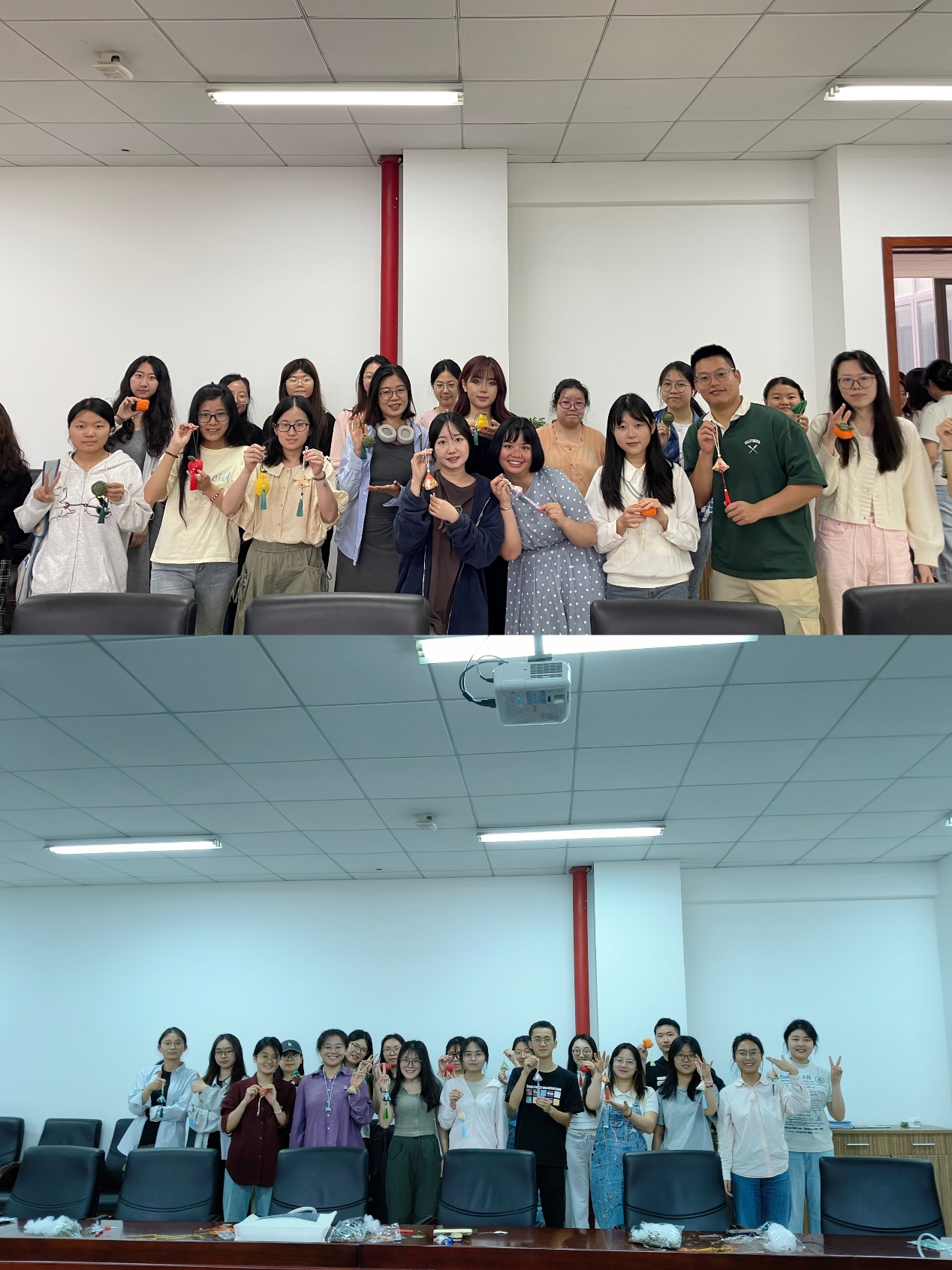 在活动的最后,大家纷纷展示自己的香囊作品。亲手制作香囊不仅锻炼了同学们的动手能力和创造力,更让他们深入领略了传统文化的独特魅力。这些香囊散发着浓郁的香气,为端午佳节增添了一抹温馨的色彩。通过这一活动,同学们在忙碌的学习生活中体会到了学校和学院无微不至的关怀,感受到了节日的温暖与美好,传递端午节深厚的文化内涵与情感。