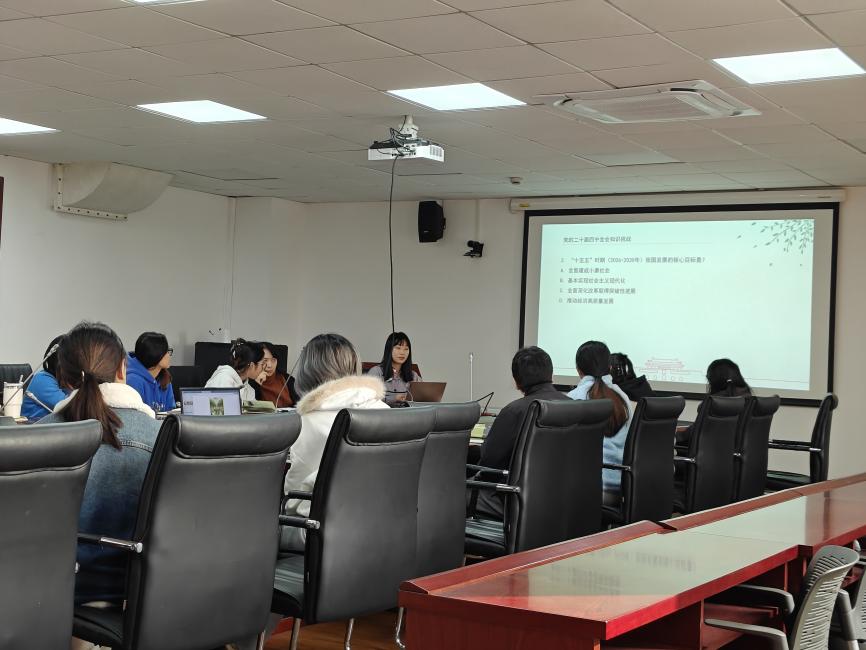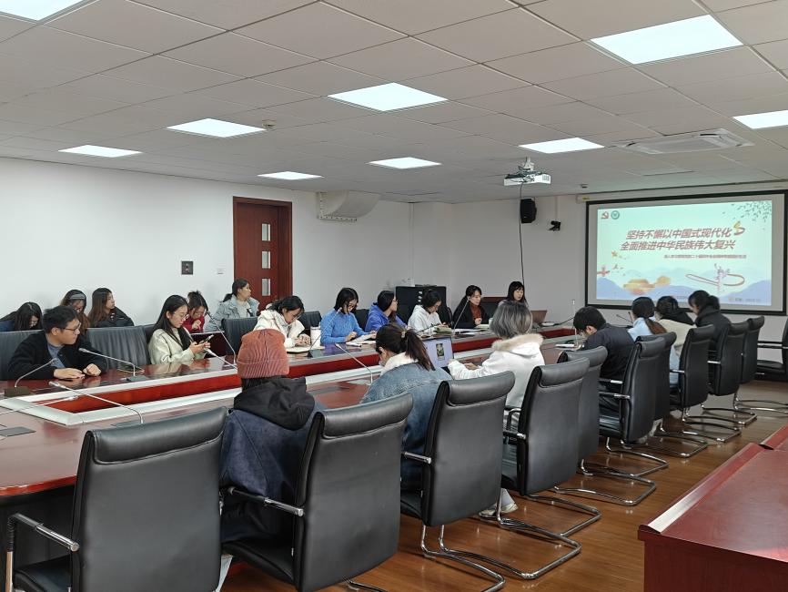 生态学硕士研究生第二党支部于资环楼354室开展了以“坚持不懈以中国式现代化 全面推进中华民族伟大复兴”为主题的组织生活。支部书记吴颖主持会议并作专题讲解,支部指导教师吴丹作总结发言。