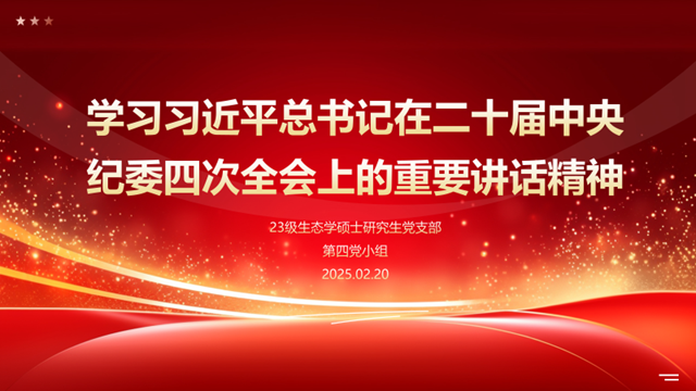 为深刻理解新时代反腐败斗争取得的历史性成就,清醒认识当前反腐败斗争形势的严峻复杂性,泥巴影院 2023级生态学硕士研究生党支部于2025年2月20日下午15:00在资环楼354举行了以“学习习近平总书记在二十届中央纪委四次全会上的重要讲话精神”为主题的组织生活。活动由支部书记张恂主持,支部全体党员参加。