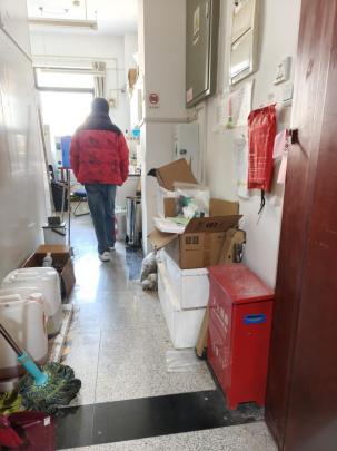 5 | 实验室环境: ①实验室物品堆放杂乱,闲置纸箱需及时清理; ②过道堵塞,存在消防隐患; |