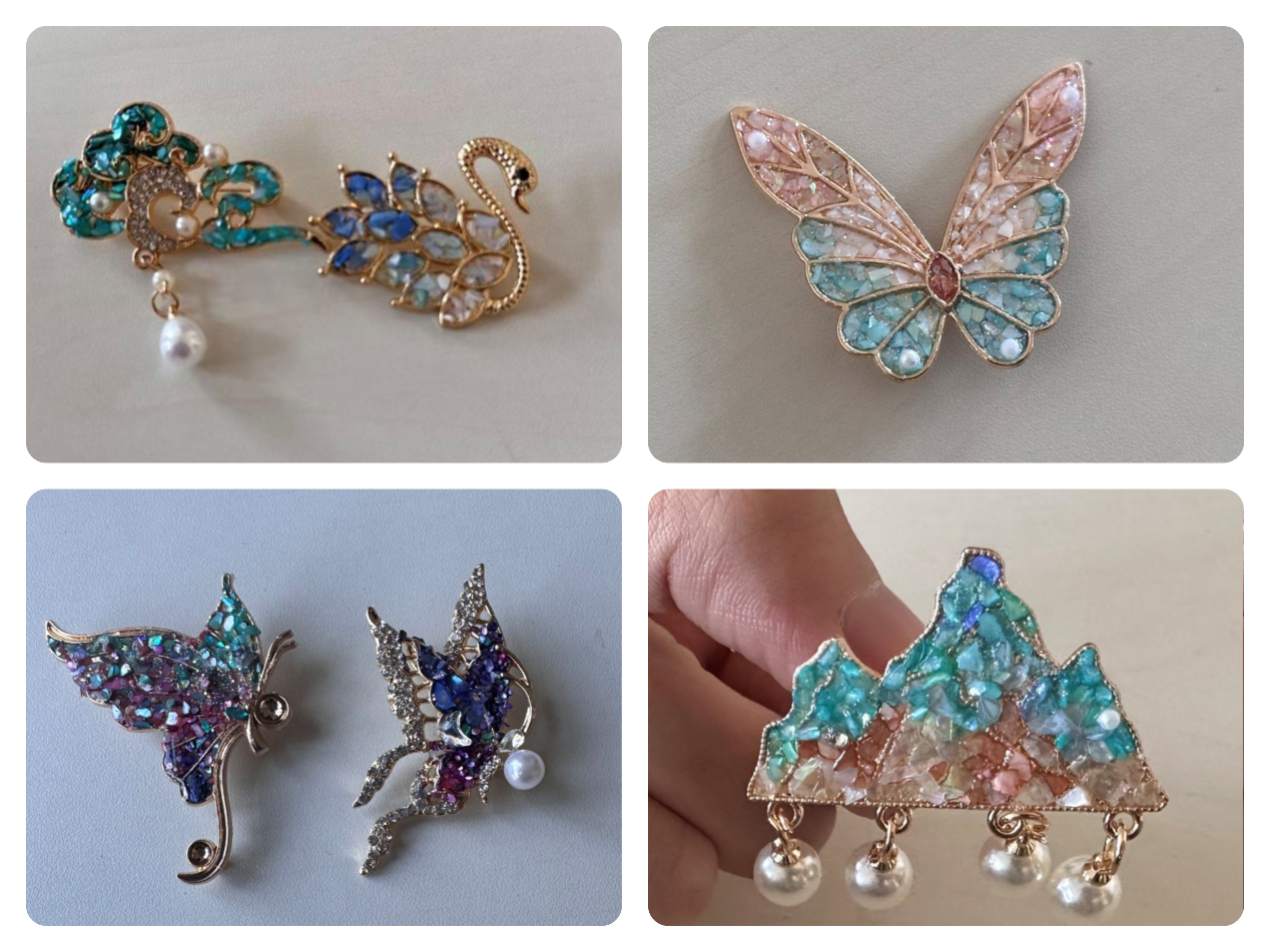 经过近两小时的精心制作,原本零散的材料在同学们手中化身为一件件独具匠心、光 泽温润的螺钿胸针或饰品。看着自己亲手完成的艺术品,参与者们纷纷展示作品,脸上洋 溢着成就与喜悦。