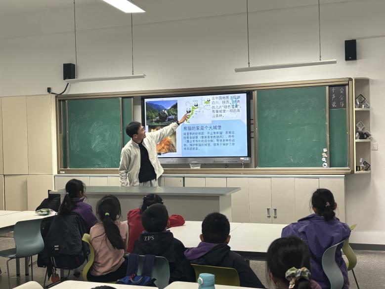 谈及大熊猫的生活与家园,同学们听得格外入神。老师们分享了大熊猫“便便不臭”的小奥秘,并介绍了大熊猫在中国四川、陕西、甘肃的栖息地,指出这片“绿色宝藏”中不仅有大熊猫,还有金丝猴、羚牛等“好邻居”,让同学们明白保护大熊猫的家园就是保护整个生态系统。