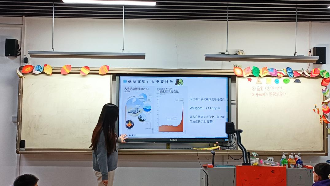 图3 讲师杨晓雨正在展示人类碳排放的情况
