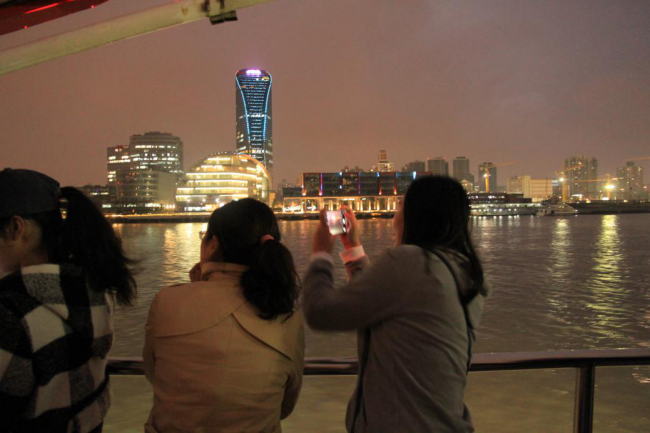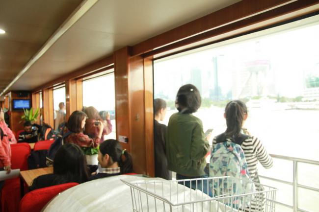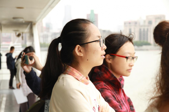 一上船同学们都被陆家嘴的高楼大厦所吸引,代表魔都的四座标志性建筑——东方明珠塔、金茂大厦、上海环球金融中心、上海中心,它们是中国改革开放的象征和上海现代化建设的缩影。