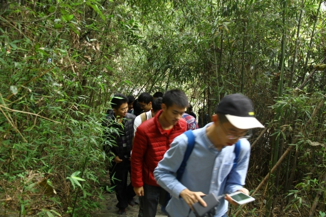 矿坑花园的原址为一处采石场遗址,设计者通过生态修复,并对深潭、坑体、迹地及山崖进行适当的改造,使其成为一座风景秀美的花园。参观过程中,柳林老师从地质环境灾害的角度出发,为同学们详细讲解了矿坑可能发生的地质环境灾害及可采取的防范措施和手段。