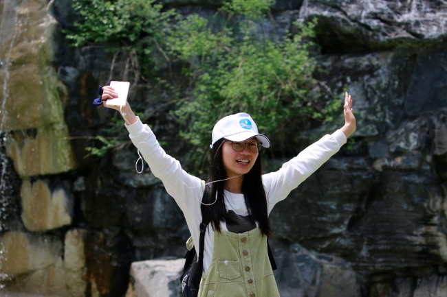 瀑布下的同学