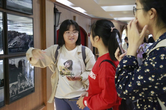 辅导员瞿轶雯老师与同学们一起参观
