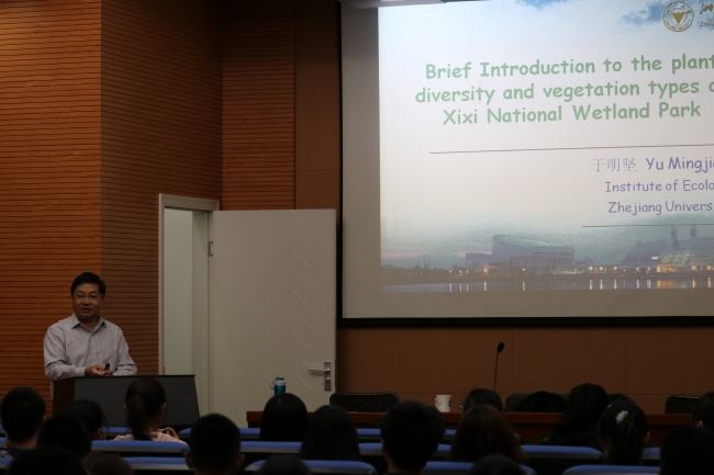 29日上午,大家从闵行校区准时出发,来到了此次实习的第一站浙江省的西溪湿地博物馆。通过对博物馆的参观学习,听取了浙江大学于明坚老师带来的关于西溪湿地和千岛湖的精彩讲座,同学们对湿地有了初步的认知。下午,同学们在老师的带领下在西溪湿地进行实地考察。通过测水样、检测空气负离子和PM2.5等数据,进一步了解西溪湿地的生态情况。