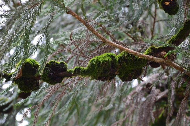 柳杉树枝上集结的瘤