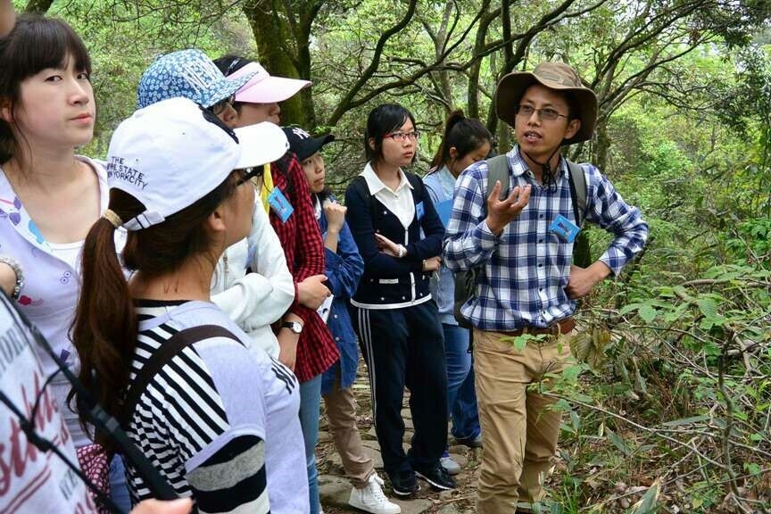 天目山国家级自然保护区赵明水高工正在给学生讲解群落外貌