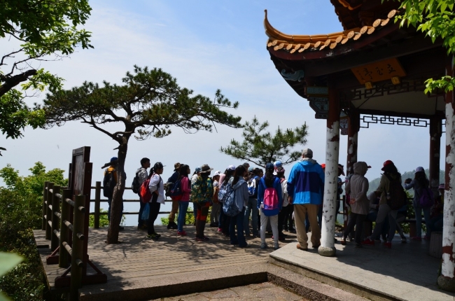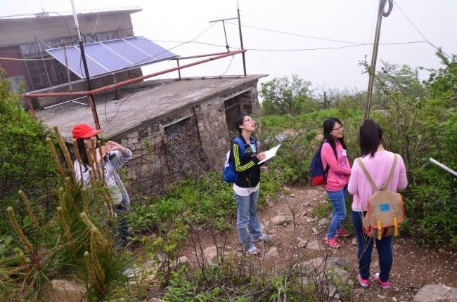 学生在天目山仙人顶观测山顶矮林的典型特征