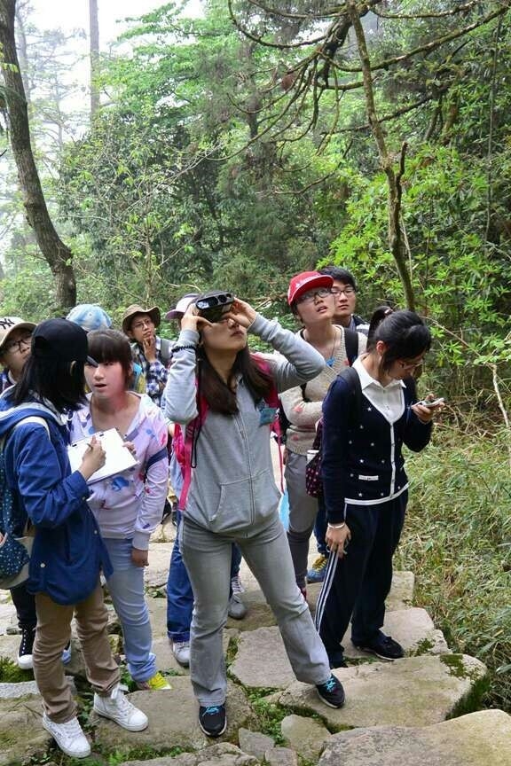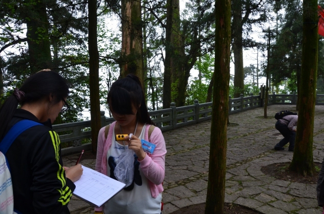 学生测量天目山植被的垂直分布结构