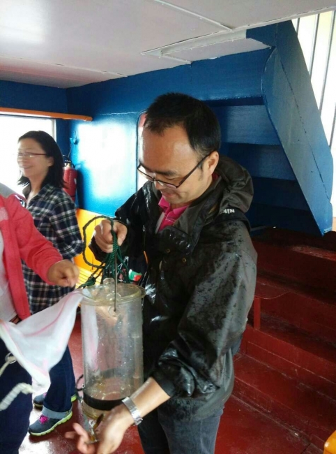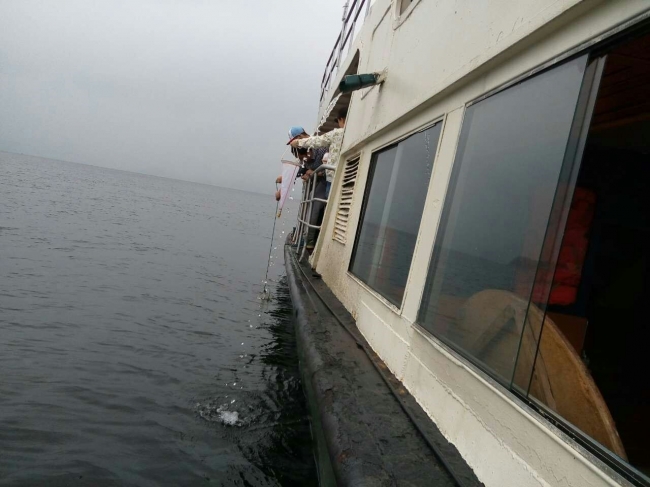 学生正在船上取千岛湖水样