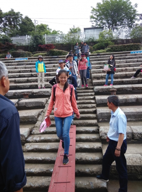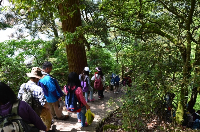 学生沿着石阶沿途观察