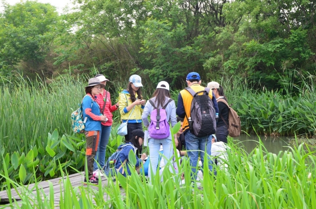 邓泓老师给学生讲解湿地典型水生植物