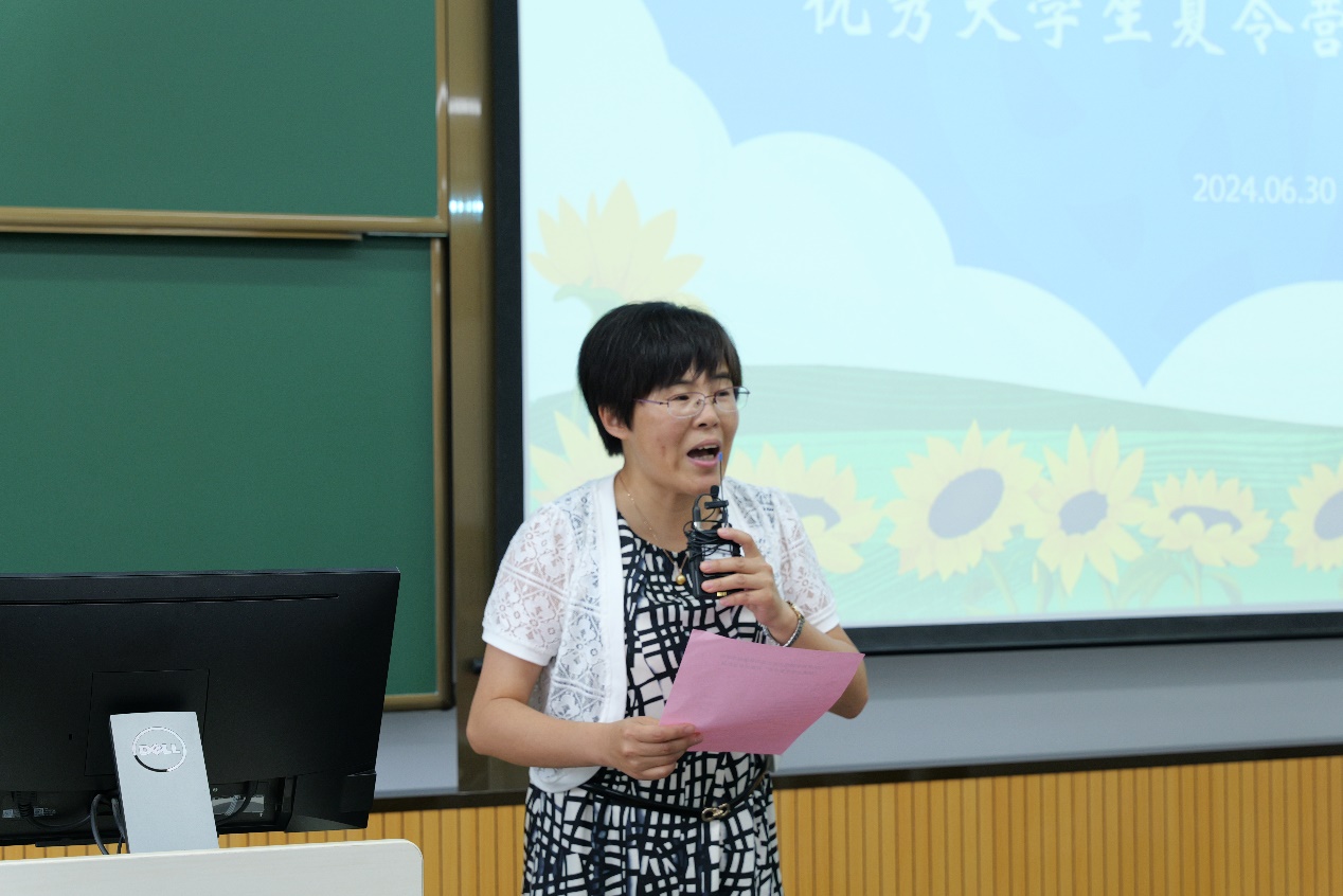 下午2:30,本次夏令营闭幕式在研究生教务秘书束亚男主持下正式开始。束亚男宣读优秀营员名单后,由院党委副书记路葵、副院长陈雪初、环境工程专业负责人何国富、环境科学专业教师代表秦荷杰与连璐诗为同学们颁发结业证书及优秀营员证书,四位老师与营员们亲切合影,留下了难忘的瞬间,为这一天增添了一抹温馨的色彩。随后,生态学专业柴恩平、环境科学与工程专业岳扬和资源与环境(环境工程)专业杨海童三位优秀营员代表,与大家分享了夏令营期间的感受与收获,并表达出对加入生环学院大家庭的热切期盼。最后,陈雪初副院长进行了闭幕总结,希望同学们在三天的夏令营生活中有所收获,热烈欢迎大家报考泥巴影院 。