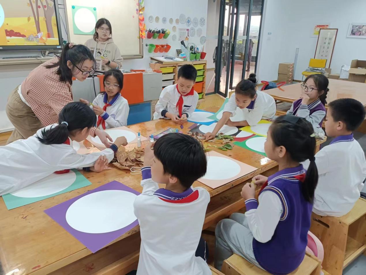 本次环教手工课,不仅让同学们留下了秋天的色彩,还提高了他们的实践动手能力。希望在本次课程的学习和实践后,能焕发出他们对自然美的感知力,运用自己的一双巧手,让秋天“跃然纸上”。