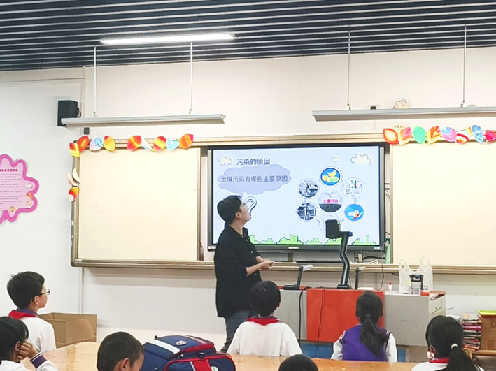 课程最后,讲师们阐述了土壤已经受到污染时的应对方法,并通过短视频复盘了整节课的学习内容,同学们的眼神里充满了对知识的渴望与对收获的期待。本次环教课在同学们全神贯注的听讲下与浓烈有趣的课堂氛围中圆满结束,通过本次的环教课,同学们不仅增长了土壤污染的小知识,还树立了防范污染的意识。希望他们可以把在课堂中学习到的知识运用在实际生活中,从自身做起、从点滴做起,做一名环保小卫士!