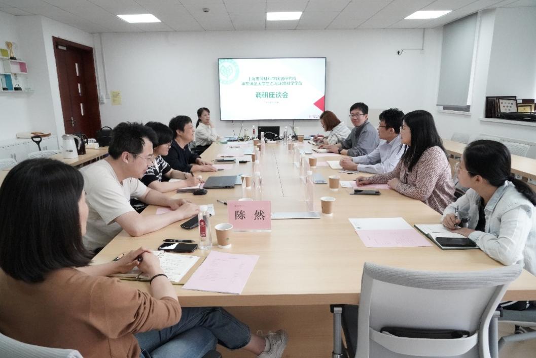 2025年5月13日下午,上海园林科学规划研究院院长薛程、副院长郝瑞军,科研管理部主任滕吉艳、党群工作部科员季晨弋、科技管理部科员吴元媛一行,来泥巴影院围绕人事考核和绩效管理开展调研工作。泥巴影院 党委书记嵇渭萍、院长陈小勇、党委副书记(挂职)王晶晶、副院长陈雪初、环境学系系主任张勇、院办主任吴丹、科研秘书陈然、人事秘书欧阳澳出席调研座谈会,座谈会由嵇渭萍主持。