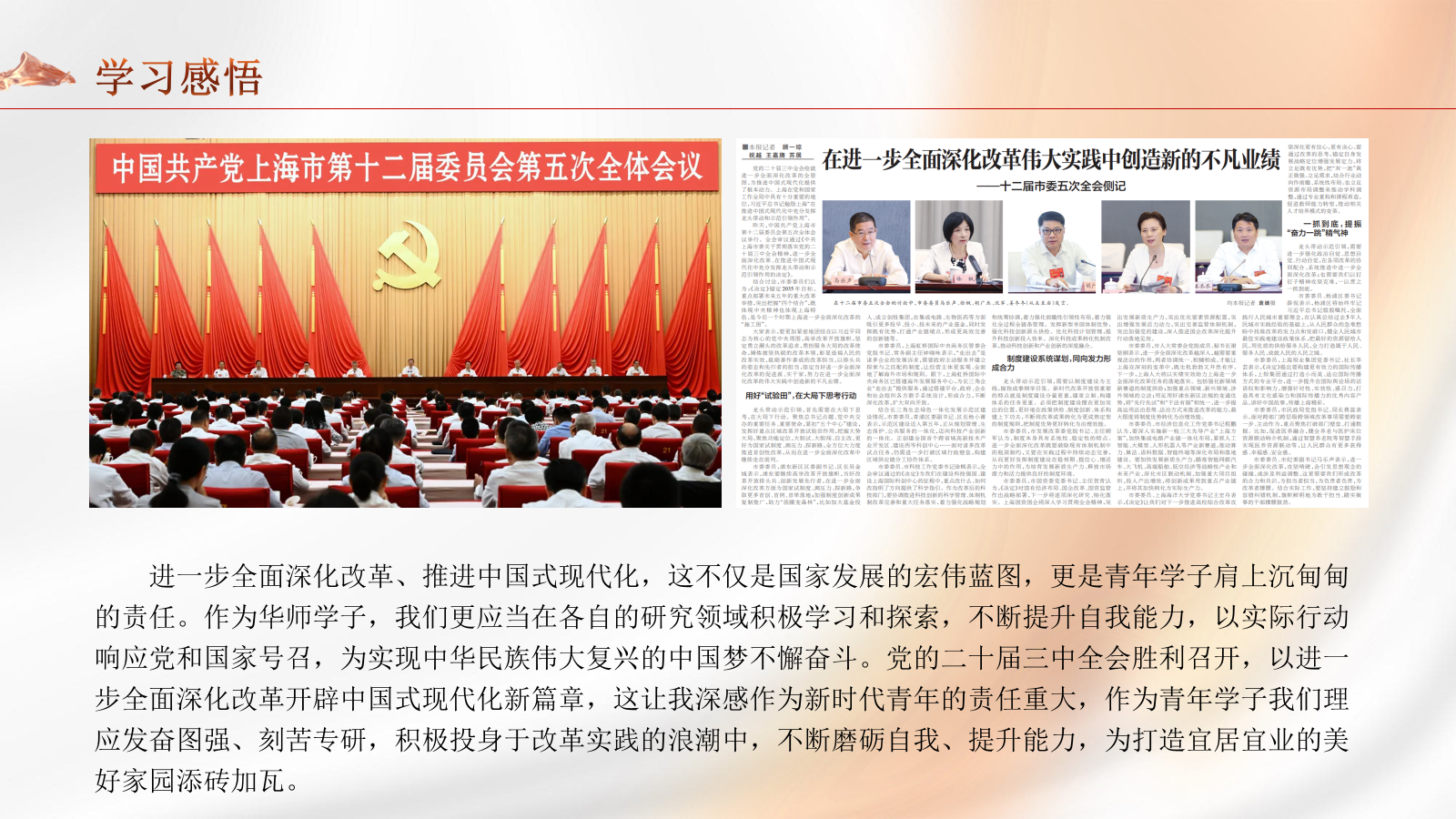 在全会精神的感召下,张靖雅和朱圆圆同学分享了他们的学习心得。