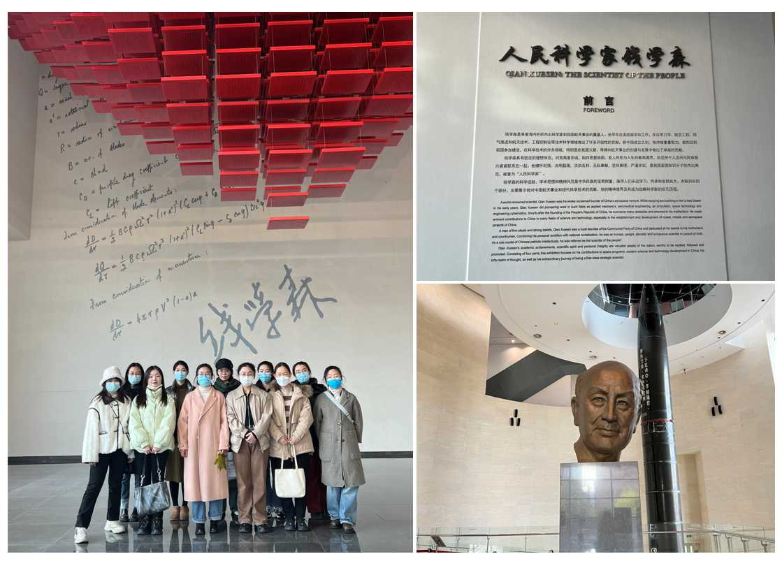 接着同学们跟随讲解员来到了第一展厅,见证了钱学森对中国导弹航天事业的历史性贡献;然后进入第二展厅,这里主要介绍了钱学森在科学理论研究上的诸多学术成就;第三展厅通过讲述钱老旅美期间归国无路的坎坷经历淋漓尽致地展示了他的爱国情怀、科学品质以及崇高的精神境界;第四展厅介绍了钱学森的学习与成长历程,以及他作为一位战略科学家的成功之道。