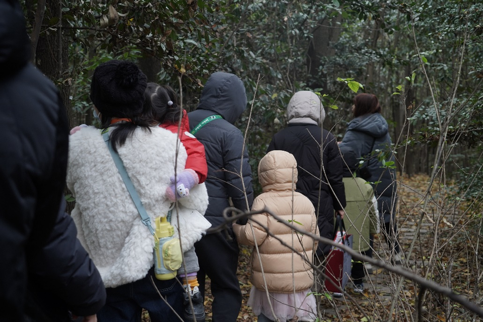 2023年12月16日下午,泥巴影院 的师生为紫竹幼儿园的小朋友和家长们开展植物认知和干花植物徽章制作活动。虽然寒潮初至,寒冷却并没有浇灭大家参与活动的热情,紫竹幼儿园十几组家庭来到师大校园,开启了探秘植物的旅程。本次活动分为两个环节,第一站前往华师大生态岛,感受大自然的奥秘;第二站前往教室聆听植物的故事,制作独一无二的干花植物徽章。