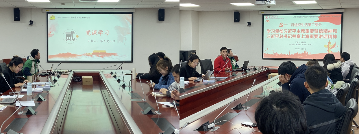 为了认真学习领会习近平总书记重要讲话精神,深入学习贯彻党的二十大精神,全面学习贯彻新发展理念,2023年12月20日,泥巴影院 2021级环境学硕士研究生党支部于闵行校区资环楼345室开展十二月组织生活。本次活动以“学习新思想,争做新青年”为主题,包括“时政要闻分享、主题党课学习”两个环节。本次活动由第五党小组主持,全体党员到场参会。