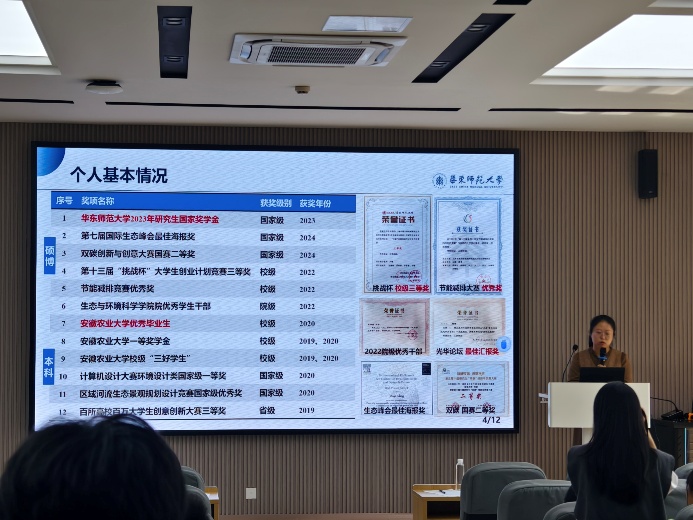 陶琳防同学率先分享了自己从考研到转博的蜕变之旅。她强调,转博之路,个人兴趣与目标是关键指引,决心与抗压能力则是必备行囊。她建议同学们提前与导师沟通转博意向,尽早敲定课题方向,为科研之路做好充分准备。在科研中,需主动探索,乐观面对失败,遇到难题要主动寻求支持,积极与导师沟通交流才能更好的解决问题。此外,她还分享了自己通过运动放松大脑、排解压力的小妙招,帮助大家在紧张的科研生活中找到平衡,保持身心健康。