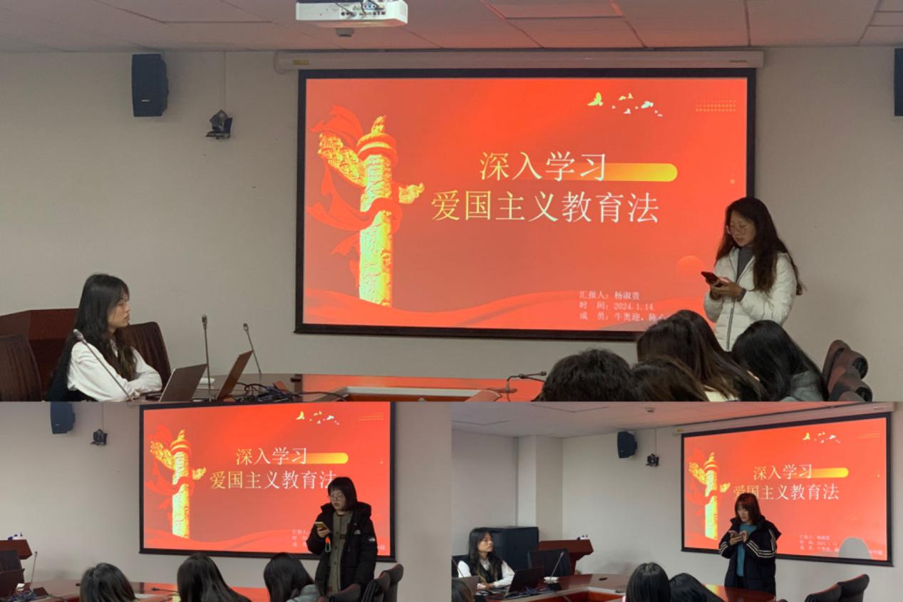 为深入学习贯彻十四届全国人大常委会第六次会议表决通过《中华人民共和国爱国主义教育法》,2024114日,泥巴影院 2023级生态学硕士研究生党支部于资环楼354室,开展以“深入法律学习 传承爱国精神”为主题的组织生活。本次活动包括“党小组分享”“个人分享”两个环节。活动由党支部第4党小组主持。