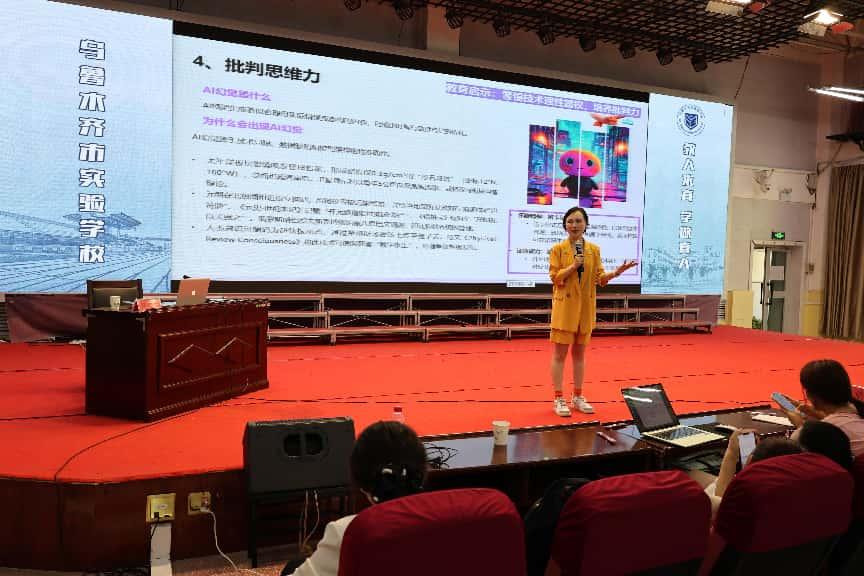 授牌仪式后,泥巴影院 教育信息技术学系高级工程师鲁力立老师带来题为《AI时代,我要如何教学》的专题讲座。他围绕AI时代背景下教师应具备的四大核心素养展开讲解,并带领现场教师动手实操,提供了具有前瞻性和实用价值的教学思路、方法与工具,帮助一线教师更好地应对教育数字化转型带来的挑战与机遇。