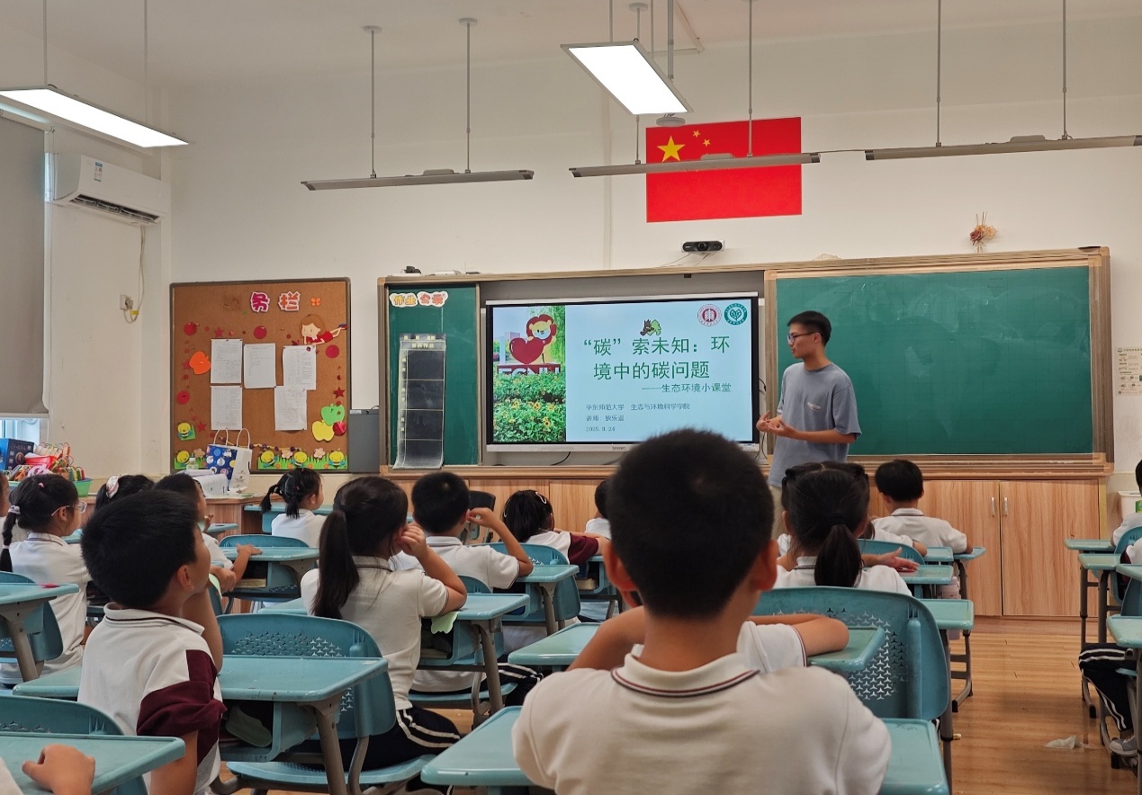 2025年9月23、24日,生环小课堂讲师团前往泥巴影院 附属紫竹小学、永德学校开展环教课,主题为“‘碳’索未知:环境中的碳问题”,狄乐遥、冯运佳、苏雅日哈乐同学担任本次课程的讲师。